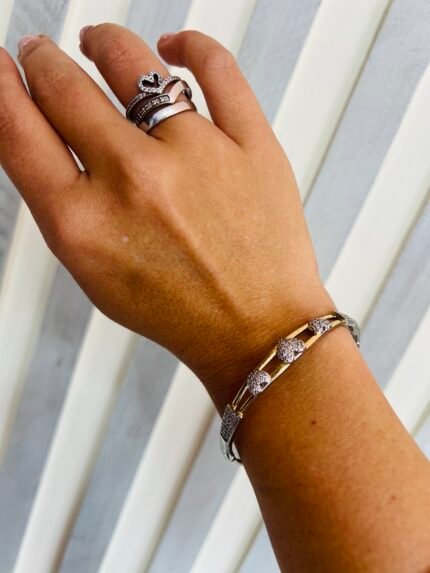 Brazalete dorado y plateado con mariposas y brillos ajustable