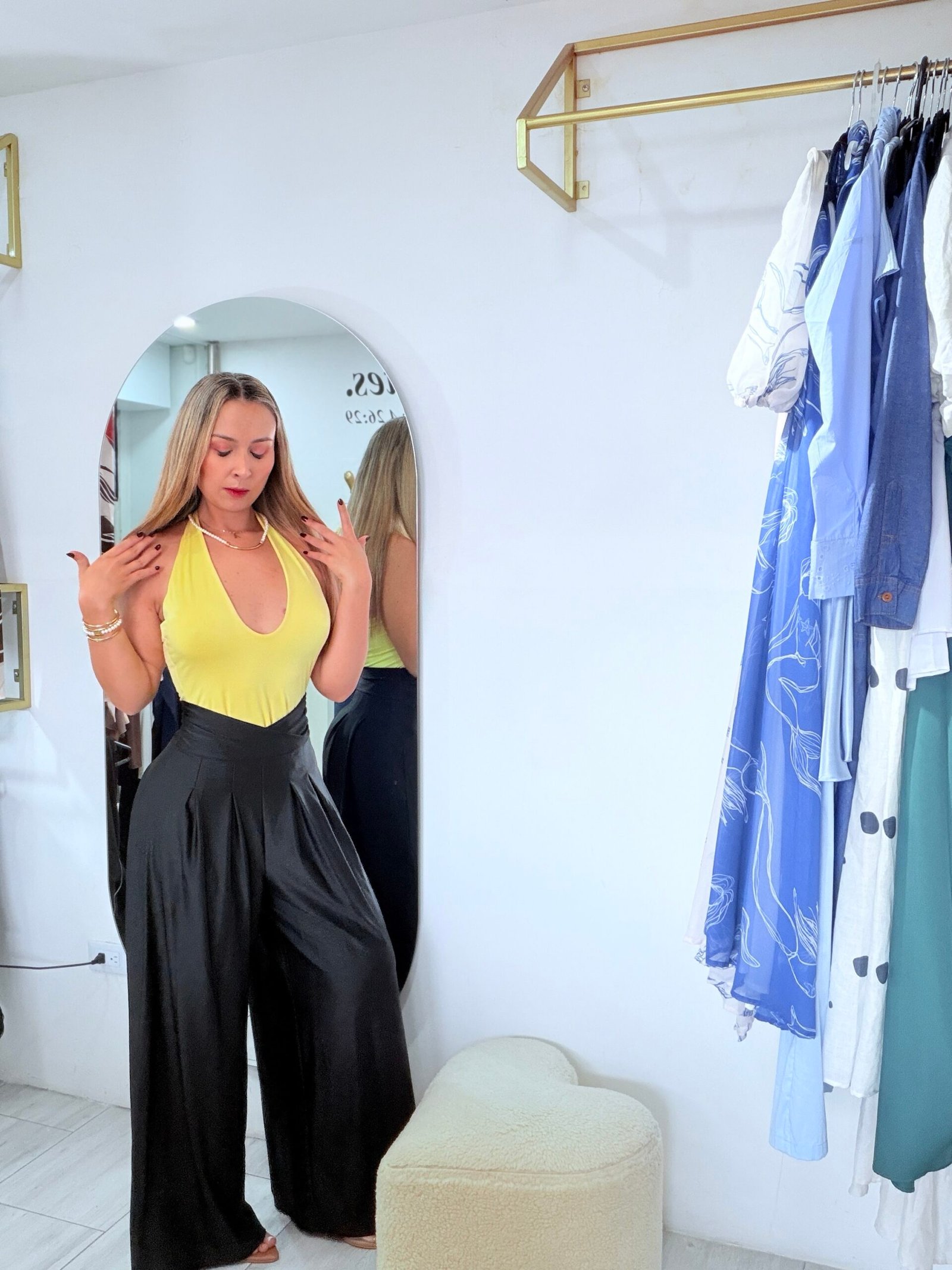 Pantalón palazzo negro en licra — pretina alta y versatilidad total